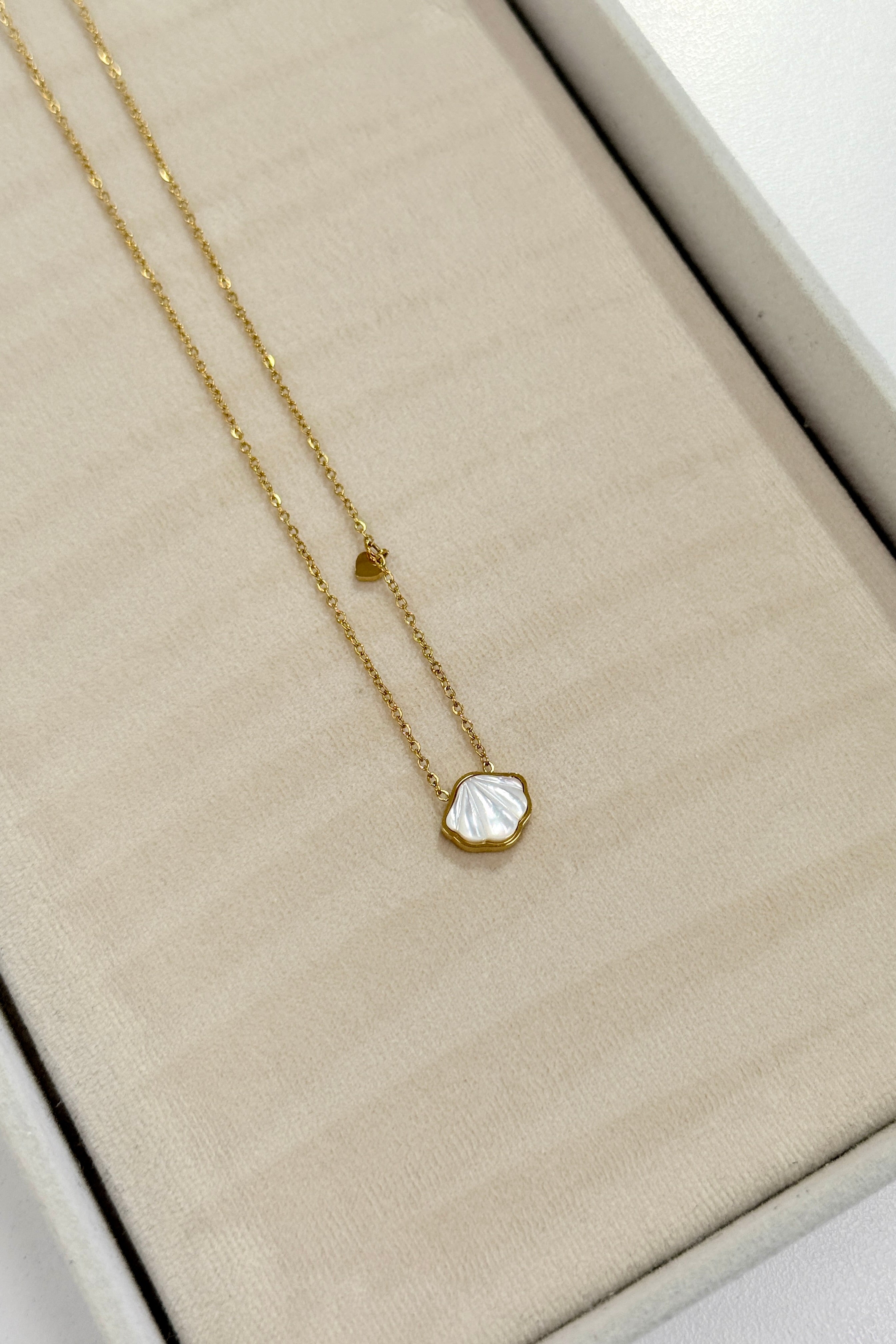 This White Shell Necklace features a luxurious 18K gold plated finish, a titanium steel core, and a natural Mother of Pearl gemstone. A 42 cm chain with a 5 cm extender and a lobster clasp closure completes the look. Beachy and stylish, this necklace is sure to be a favourite.