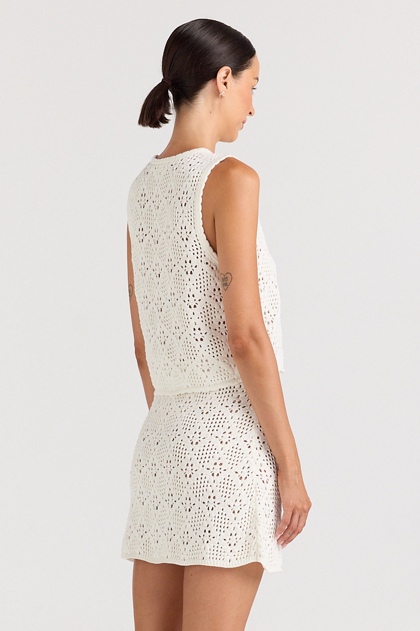 The Messina Knit Mini Skirt is a sweet, vintage-inspired essential crafted in our signature open-lace crochet knit. Designed with an elastic waistband for effortless comfort, this mini sits softly on the waist and pairs perfectly with swimwear or the matching Messina V Knit Top. Lightweight, breezy, and endlessly wearableβyour new summer staple.